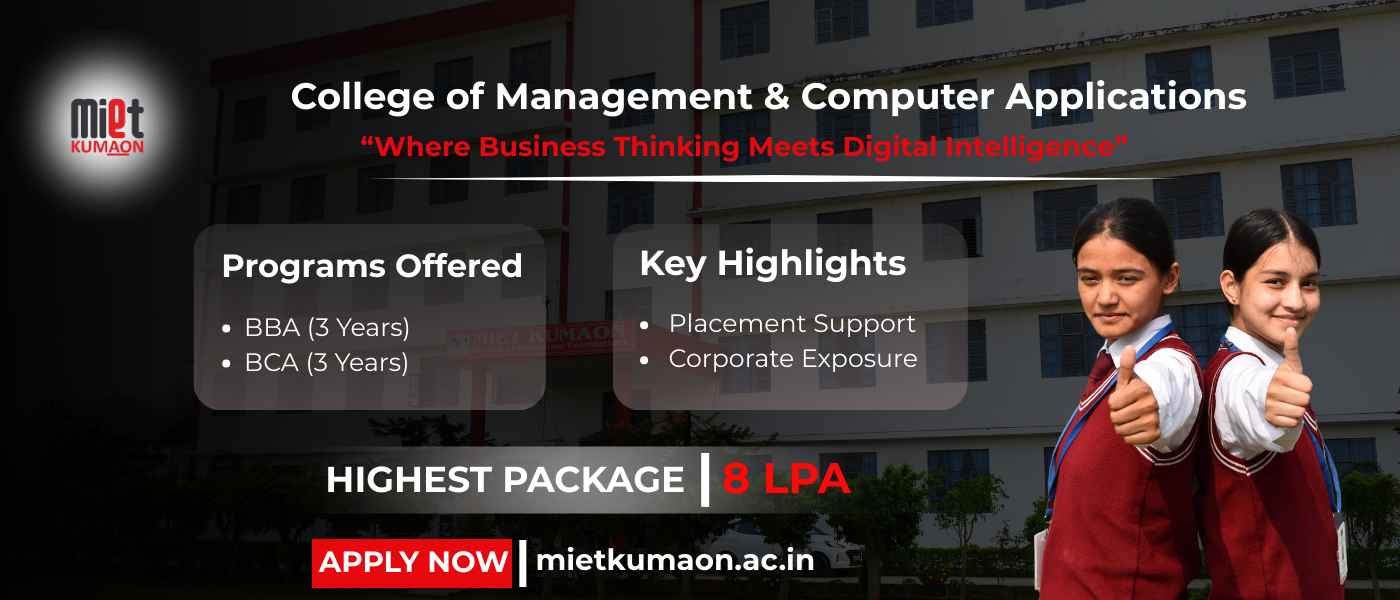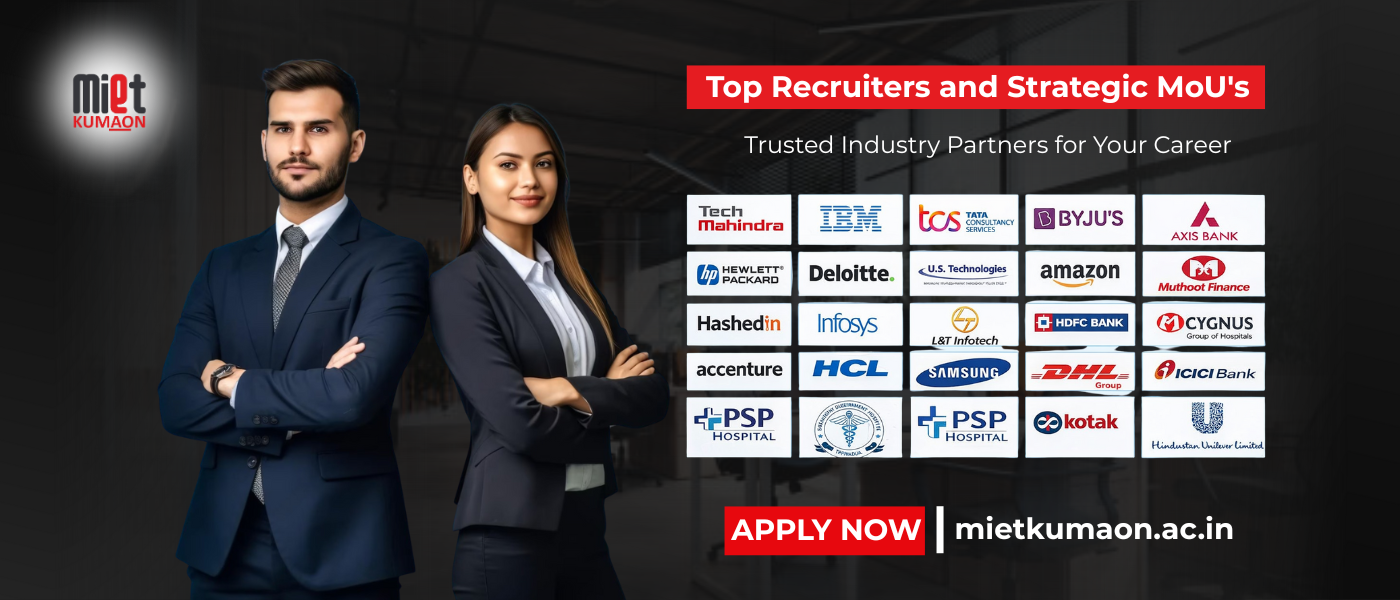 The college fosters a culture of innovation, critical thinking, and ethical values, encouraging students to actively participate in workshops, seminars, and community outreach programs. By integrating technology-driven learning, collaborative projects, and real-world case studies, MIET Kumaon nurtures well-rounded professionals ready to make meaningful contributions to society. With a strong focus on student success, the institution also offers robust career guidance, soft skills training, and placement support to help graduates confidently step into competitive professional environments.